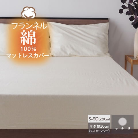 マットレスカバー シングル セミダブル ダブル 季節の変わり目に 2台用サイズ コットンフランネル コットン100% 綿100% くったり しっとり高密度 厚みしっかり キナリ ベージュ グレー G27