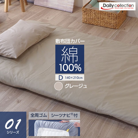 敷布団カバー 綿100% ワンタッチシーツ ダブル (140×210cm) グレージュ フィットシーツ 全周ゴム G01