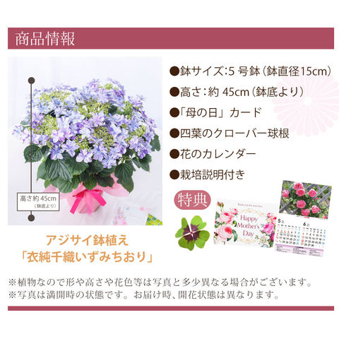 母の日に合わせてお届けする、季節限定のアジサイ鉢植えです。
