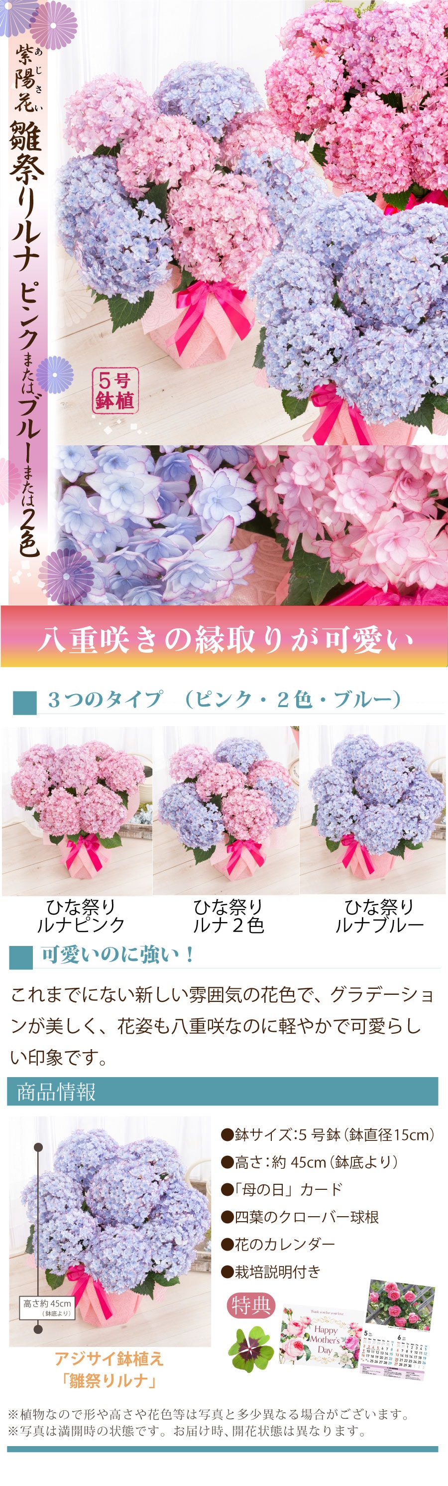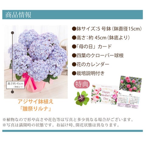 母の日 ギフト 2026 希少 アジサイ 鉢植え ひなまつりルナ ブルー 紫陽花セレクション 鉢花 プレゼント あじさい 花 鉢 母の日ラッピング 高級 希少種 送料無料