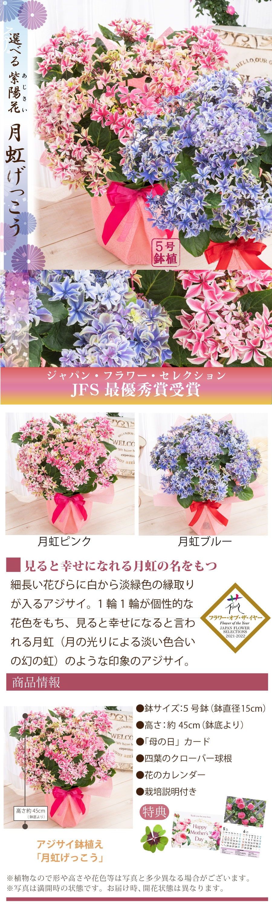 母の日に合わせてお届けする、季節限定のアジサイ鉢植えです。