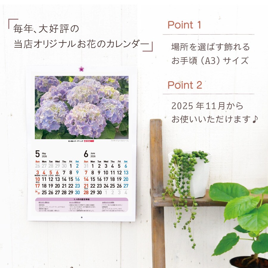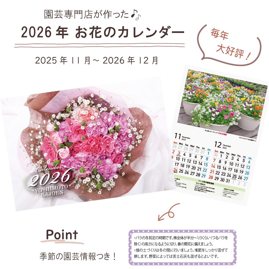 当店オリジナル! お花のカレンダー 吉本花城園オリジナルカレンダー (2025年11月から2026年12月)