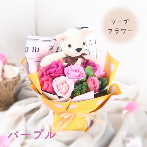 ソープフラワー くまのブーケ 【パープル】 スタンディングブー ケ シャボンフラワー プレゼント ギフト バラ 花 ブーケ フラワーアレンジメント 石鹸 香り フレグランス 造花 ホワイトデー 退職祝い お祝い お花 結婚祝い 結婚記念日 誕生日