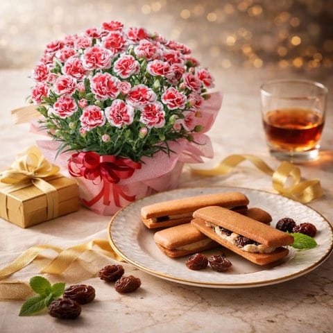 母の日 花とセット ホテルオークラレーズンサンドと カーネーション いちごホイップ 花とスイーツ プレゼント お菓子付き 60代 70代 80代 のお母さんにおすすめ 2026 送料無料