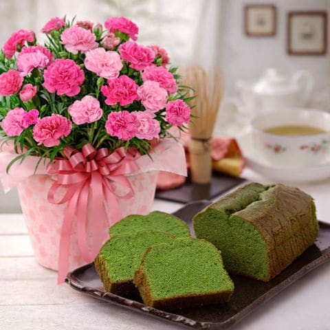 母の日 花とセット 抹茶チーズケーキと カーネーション さくらもなか 花とスイーツ プレゼント お菓子付き 60代 70代 80代 のお母さんにおすすめ 2026 送料無料
