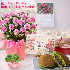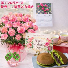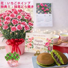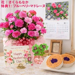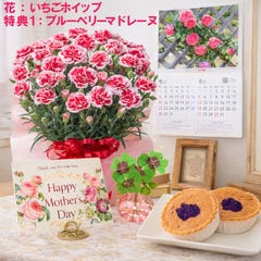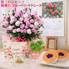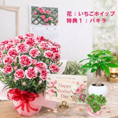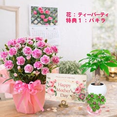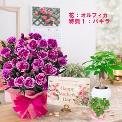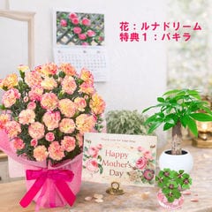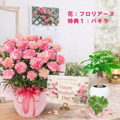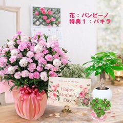 母の日 早割 プレゼント 2026 花とセット ギフト カーネーション バンビーノ 鉢植え 選べる特典付き パキラ 四葉のクローバー球根 カレンダー付き 園芸専門店 吉本花城園