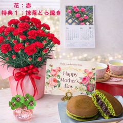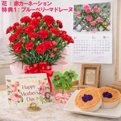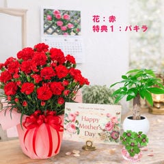 母の日 早割 プレゼント 2026 花とセット ギフト カーネーション 赤 レッド 鉢植え 選べる特典付き パキラ 四葉のクローバー球根 カレンダー付き 園芸専門店 吉本花城園