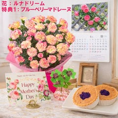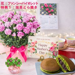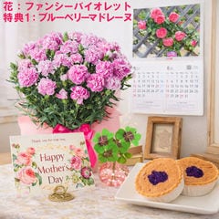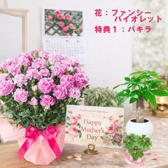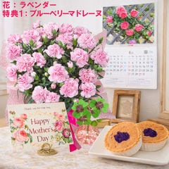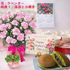 母の日 早割 プレゼント 2026 花とセット ギフト カーネーション ラベンダー 鉢植え 選べる特典付き パキラ 四葉のクローバー球根 カレンダー付き 園芸専門店 吉本花城園
