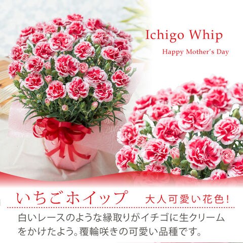 母の日 プレゼント カーネーションとスイーツのセット 【いちごホイップと赫々生どら焼き】 5号鉢植え 2025 花 ギフト ラッピング 吉本花城園