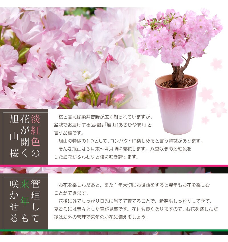 桜の苗木「旭山」一才桜 花1本立ち ポット苗 自宅でお花見楽しめる桜盆栽♪