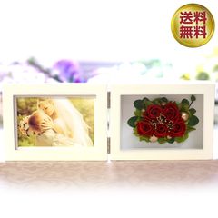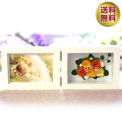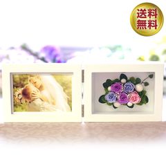 プリザーブドフラワー IPFA 誕生日 結婚記念日 ハロウィン 結婚祝い 退職祝い に最適 フォトフレーム 縦 (ピンク&ピンク)