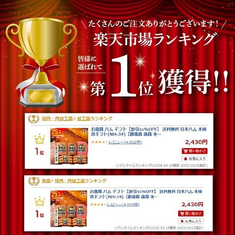 毎シーズン大人気の日本ハムNH-37はシーズンギフトのハムとしてランキング上位常連!信頼のブランド、、日本ハムの商品は、どなたでも調理しやすく食べやすいウインナーが多め、しかも生ハム入りなのが人気の理由です。