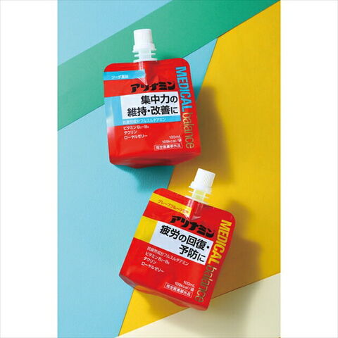 | 疲労の回復・予防の効能を持ったアリナミンのゼリー状飲料 ※流動性のある粘稠なゲル状の液の製剤吸収にすぐれたビタミンB1誘導体「フルスルチアミン」に加えビタミンB2・B6、タウリン、ローヤルゼリーを配合。爽やかなグレープフルーツ風味です。 |