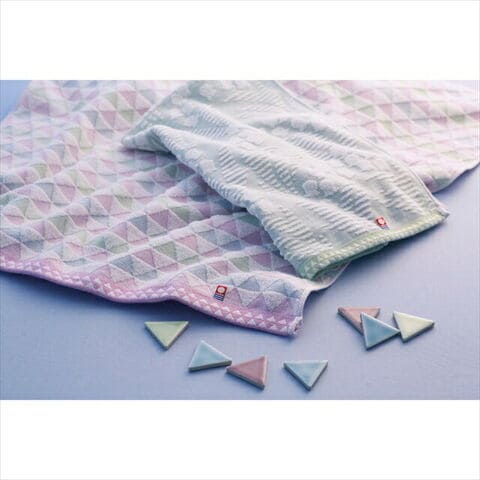 | やさしさの花言葉を持ち春の訪れとともに咲くすずらんと色とりどりのさんかく模様に北欧エッセンスを加えた居心地の良いタオルです。 |