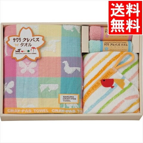 タオル ギフト 送料無料 クレパスタオル フェイス・ウォッシュ・タオルハンカチセット(CR23250)【内祝い お返し お祝い 出産 結婚 出産祝い 結婚祝い 御祝い 贈り物 プレゼント 誕生日 記念日 誕生日プレゼント 雑貨 小物 便利 かわいい】