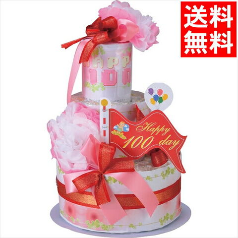 ベビー ママ ギフト 送料無料 おむつdeケーキ 100DAY MEMORY 2段(ピンク)(25-003-100DAY)【内祝い お返し お祝い 出産 結婚 出産祝い 結婚祝い 御祝い 贈り物 プレゼント 誕生日 記念日 誕生日プレゼント 雑貨 小物 便利 かわいい】
