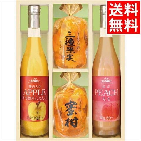 | 果汁100%信州産すりおろしりんごジュース・国産もも果汁入り飲料(果汁50%)各500ml×各1、果実ゼリー(国産蜜柑)・果実ゼリー(三種果実)各350g×各1 |
