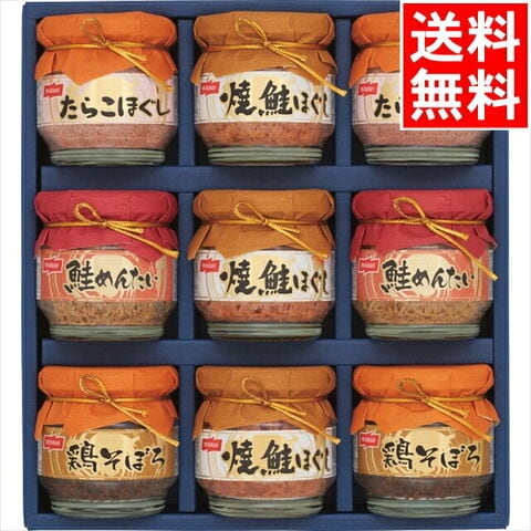瓶詰 ギフト 送料無料 ニッスイ 瓶詰ギフトセット(BA-50E)【お歳暮 内祝い お返し 御返し 瓶詰め 詰め合わせ 詰合せ おかず ご飯のお供 カニ 蟹 ずわいがに ほぐし身 鮭 鮭めんたい たらこ バラエティ 贈り物 プレゼント】