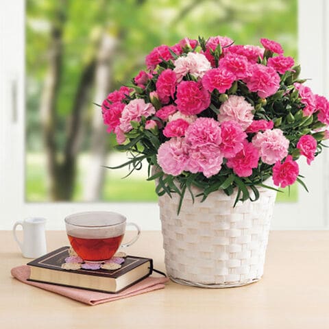| カーネーション(5号鉢)、バスケットお手入れのしおり付 |