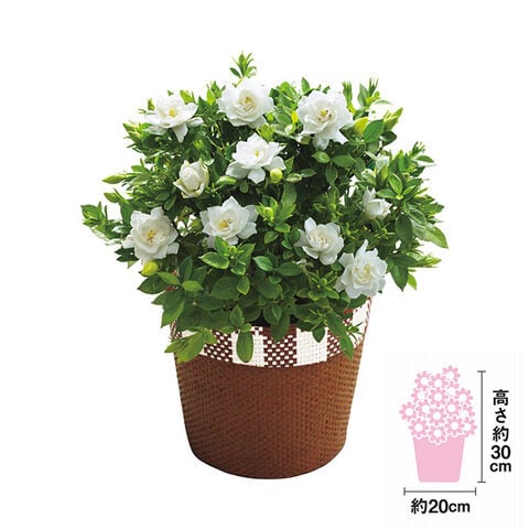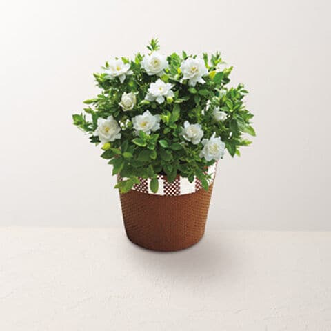 | ガーデニア(5号鉢)、バスケットお手入れのしおり付つぼみの状態でお届けします。 |
