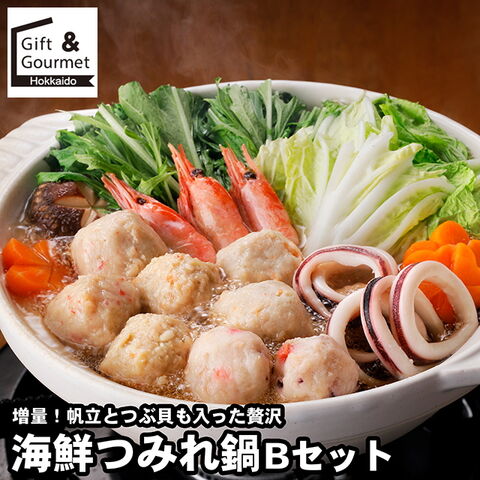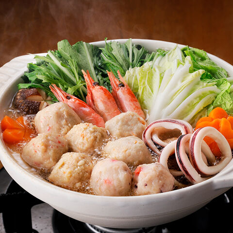 | 「かに入つみれ」・「えび入つみれ」・「とりごぼうつみれ」・「たこ入つみれ」など、ボリュームいっぱいのつみれを主役に「えび」や「いか」等の魚介を詰め合わせました。「4種のつみれ」と「各具材」の旨味が鍋いっぱいに広がります。ご自宅の野菜も一緒に煮込んでからお楽しみください。 |