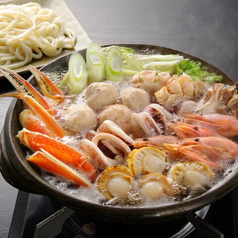 | ボリュームたっぷりの蟹と各種魚介を詰め合わせた「かに鍋」。蟹好きの期待を裏切らない醤油仕立ての鍋です。シメは残りたれに「冷凍うどん」を入れてお楽しみください。雑炊もお勧め。 |