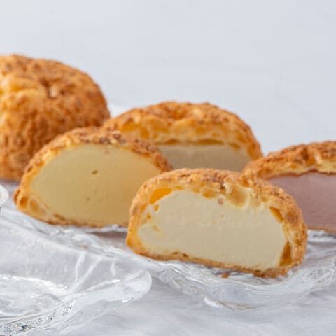 | 厳選したフルーツ果汁と北海道産生クリームを使用したなめらかなアイスクリームをシュー生地にクッキー生地をのせて焼いたサクサク食感のクッキーシューに閉じ込めたプレミアムシューアイスです。 |