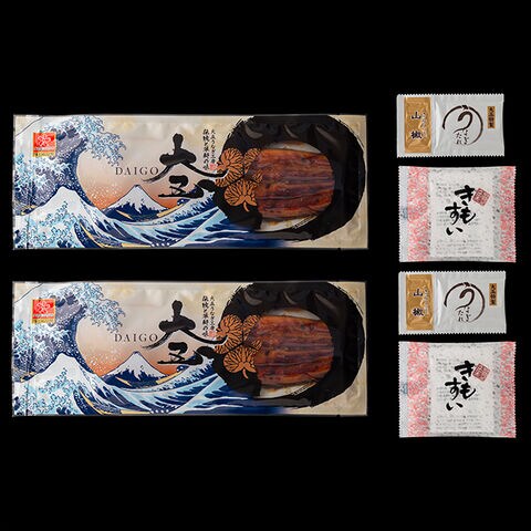 | 蒲焼×2尾(計240g)、肝吸い×2、山椒付たれ×2 |