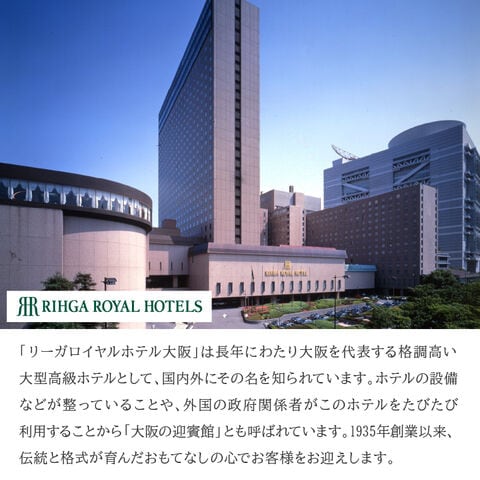| 長年にわたり大阪を代表する格調高い大型高級ホテルとして、国内外にその名を知られている。ホテルの設備などが整っていることや、外国の政府関係者がこのホテルをたびたび利用することから「大阪の迎賓館」とも呼ばれている1935年創業以来、伝統と格式が育んだおもてなしの心でお客様をお迎えします。 イタリア産のマロン原料をふんだんに使用し、高級感のあるノワゼット(ヘーゼルナッツ・アーモンド)生地に濃厚なマロンクリームを合わせました。伝統と格式のリーガロイヤルホテル監修の贅沢なモンブランです。 |