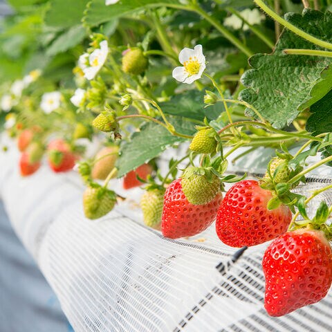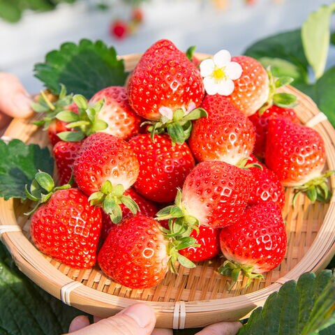 | 花のように開いた博多あまおうの中に練乳アイスを絞り、苺のフリーズドライをトッピング。彩りも味わいも華やかなアイスデザートです。 |