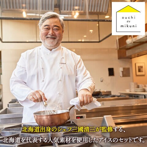 | 北海道出身のシェフ三國清三が監修する、北海道を代表する人気素材を使用したアイスのセットです。チーズタルト、キャラメルナッツ、生チョコ、北海道いちごの濃厚な味わいをお楽しみください。 |