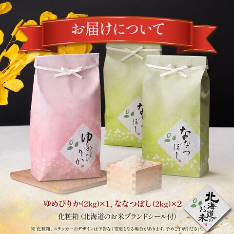 | ・北海道産ゆめぴりか 2kg×1袋 ・北海道産ななつぼし 2kg×2袋 ※ 令和7年産となります。 |
