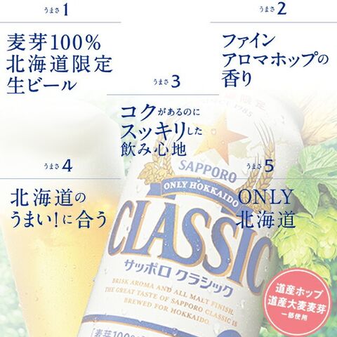 | サッポロクラシック/缶が破損するおそれがありますので、缶への衝撃、凍結を避け、直射日光のあたる車内等暑くなる場所に長時間置かないでください。 お飲みになる前に冷蔵庫で冷やしてからお飲みください。 北海道おつまみ/直射日光、高温多湿を避け、25℃以下で保存してください。 |