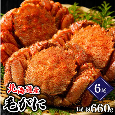 カニ かに ギフト 送料無料 北海道産 毛ガニ 6尾(ボイル済み・1尾660g)【蟹 毛がに 毛ガニ 毛蟹 けがに 海鮮 茹で済み 茹で上げ 姿 すがた 大きい 大きめ 600g 600g 海鮮 内祝い 御祝い 御礼 プレゼント 贈り物】[hkan]