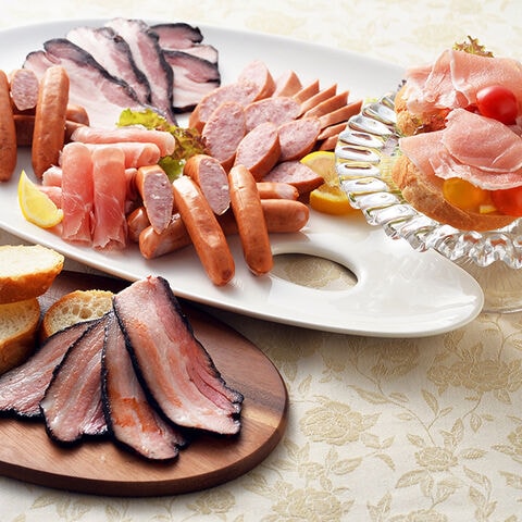 | ウインナーは、ボイルすると天然腸の皮がパリッとして美味しく召し上がれます。ボロニアソーセージは、お好みの厚さにスライスして表面を軽く焼くのがおすすめです。ベーコンはスープ・炒め物などにご利用いただけます。生ハムは、野菜やチーズにもよく合います。 |