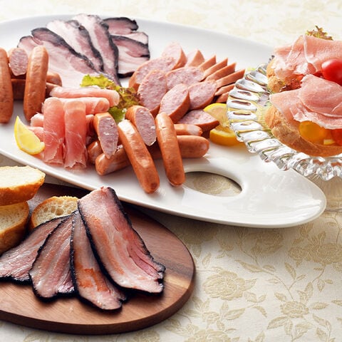 | ベーコン、ソーセージはフライパンで焼くとより美味しくお召し上がり頂けます。生ハムは野菜やチーズによく合うので、サラダやオードブルにもご利用いただけます。 |