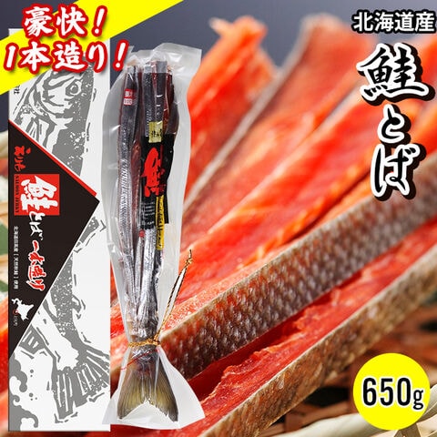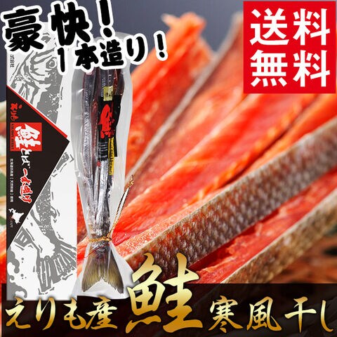 北海道産の鮭を一匹まるごと干した インパクト大の鮭とば! サプライズやプレゼントに大人気! |