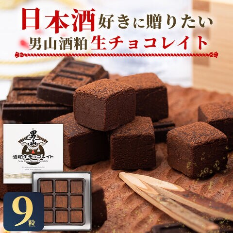 バレンタイン チョコ チョコレート ギフト 男山酒粕生チョコレイト(9粒入り)×1【スイーツ 生チョコ ちょこ 日本酒 お酒入り 純米大吟醸 吟醸酒 ちょこれーと プレゼント 手提げ 紙袋 高級 アルコール】[hswt]
