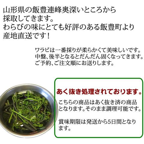 わらび あくぬき済 1kg 天然 山形県産 飯豊連峰 朝採り 山菜 産地直送 送料無料 冷蔵便 飯豊町 沖縄・離島配送不可