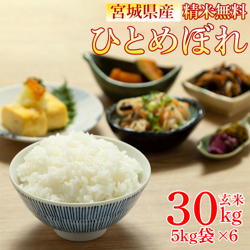 米 お米 おこめ 令和7年産 ひとめぼれ 玄米30kg 5kg袋×6 (白米に精米後4.5kg×6袋 )宮城県産 白米・無洗米・分づきにお好み精米 送料無料 当日精米 沖縄・離島配送不可 置き配可