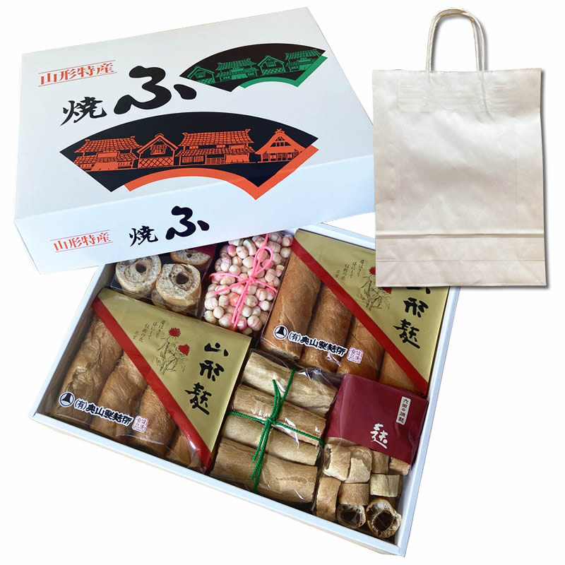 山形県東根市六田 奥山製麸所 [焼麩詰め合わせ 手提げ袋1袋付き] 押麩 三巻麸 玉千代麸 煮しめ麸 小巻麸 贈答対応 送料無料 沖縄・離島配送不可