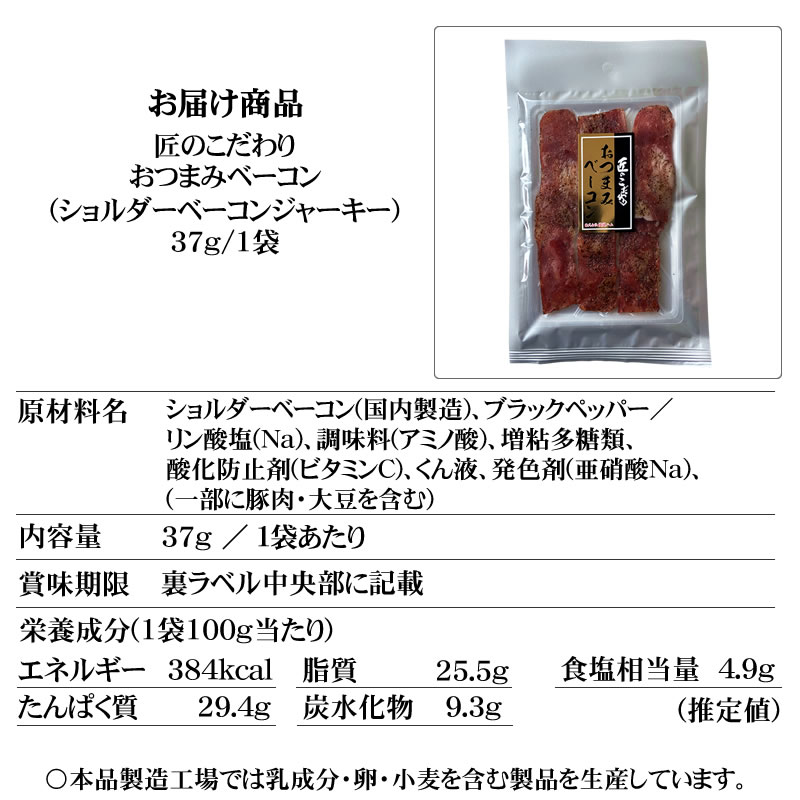 [ショルダーベーコン37g×15袋] ベーコンジャーキー おつまみ カルパス, サラミ,ドライソーセージ好きな方必見 珍味 訳ありではなく正規品 送料無料 おやつ ポイント消化 山形 即送 沖縄・離島配送不可 置き配可