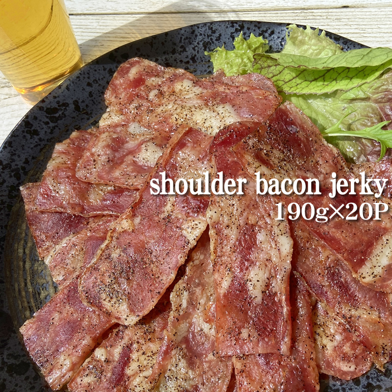 [ショルダーベーコン190g×20袋] ベーコンジャーキー 大容量 業務用 おつまみ カルパス, サラミ,ドライソーセージ好きな方必見 珍味 訳ありではなく正規品 送料無料 おやつ ポイント消化 山形 即送 沖縄・離島配送不可