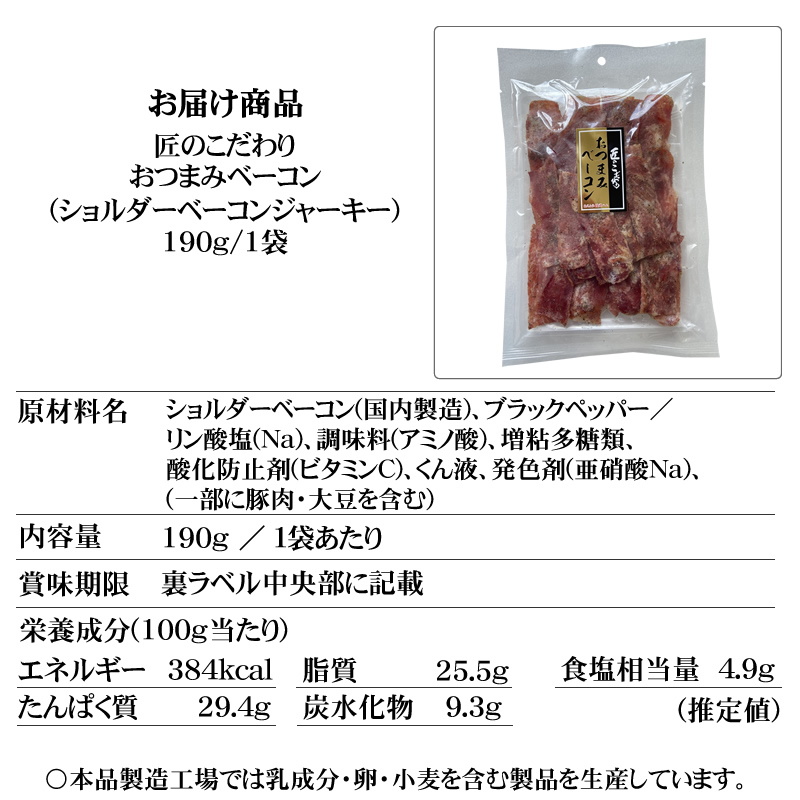 [ショルダーベーコン190g×2袋 L3] ベーコンジャーキー おつまみ カルパス, サラミ,ドライソーセージ好きな方必見 珍味 訳ありではなく正規品 送料無料 おやつ ポイント消化 山形 メール便 YP 即送