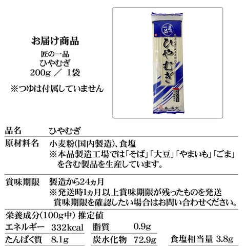匠の一品 [ひやむぎ200g×2袋 BS] 200g×2袋 添加物不使用 山形県 城北麺工 お試し 送料無料 メール便 NP 即送