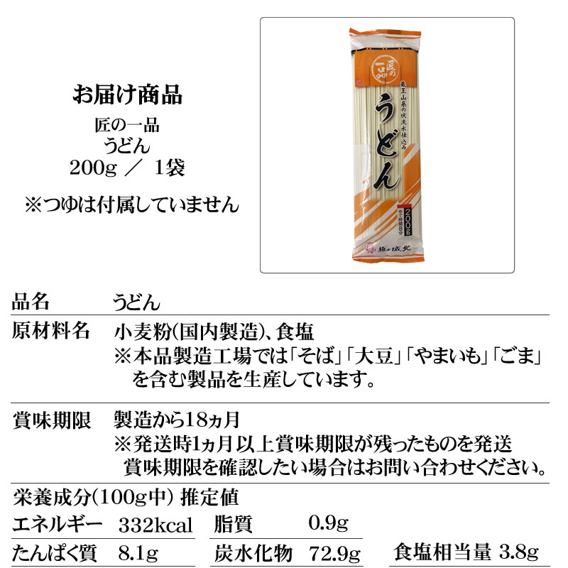 匠の一品 [うどん200g×1袋 BS] 1袋 200g 2人前 添加物不使用 山形県 城北麺工 お試し 送料無料 メール便 NP 即送