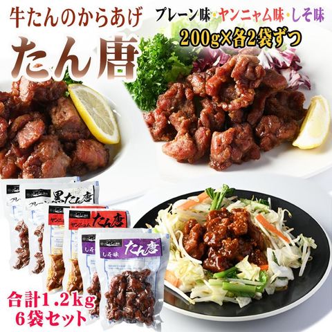 牛たんの唐揚げ たん唐 1.2kg 3種6袋セット詰め合わせ 冷凍 送料無料 はらから お取り寄せ ギフト 贈り物 牛タン [たん唐 1.2kg(3種詰合せ全6袋)] 沖縄・離島配送不可