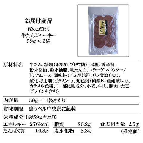 匠のこだわりシリーズ [牛タンジャーキー59g×2袋 楯岡ハム L2] 牛たん ジャーキー 送料無料 メール便 YP 即送