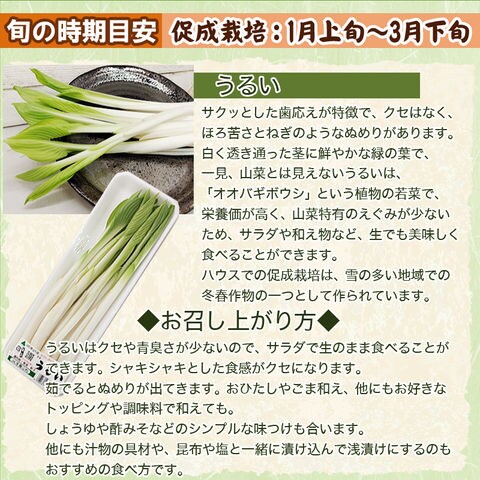 山形県産 促成 山菜 うるい 200g (100g×2パック) 送料無料 クール便 [促成うるい 100g×2] 沖縄・離島配送不可