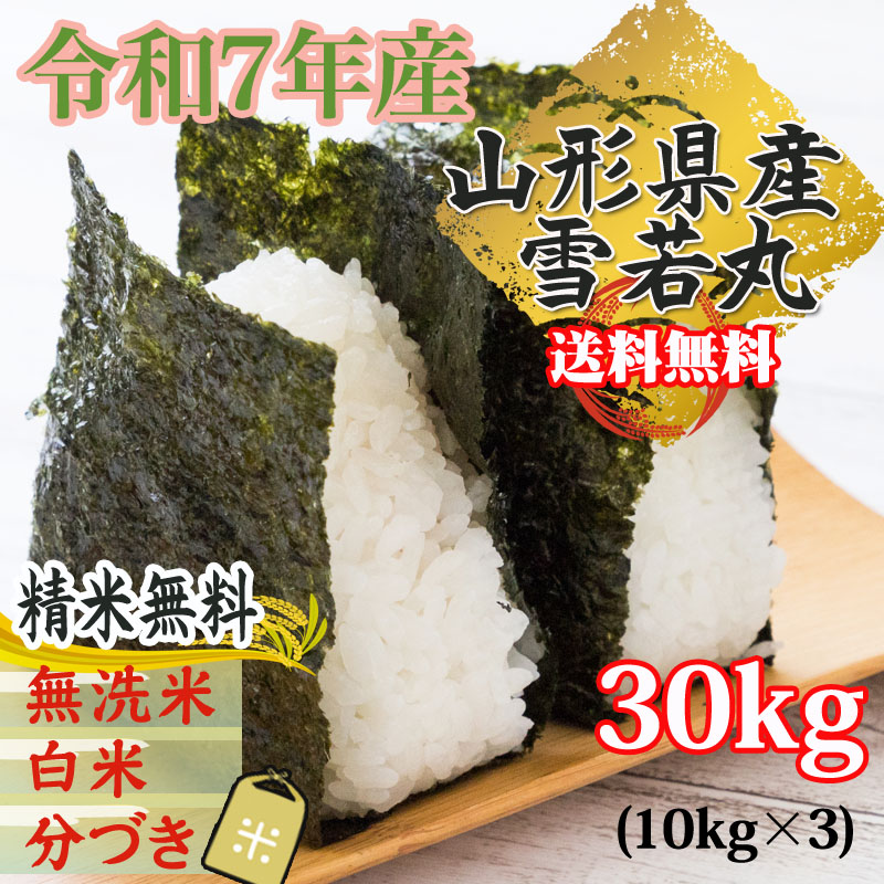 新米 米 お米 おこめ 令和7年産 雪若丸 玄米30kg 10kg袋×3 (3分づきに精米後9.7kg×3袋 )山形県産 白米・無洗米・分づきにお好み精米 送料無料 当日精米 沖縄・離島配送不可